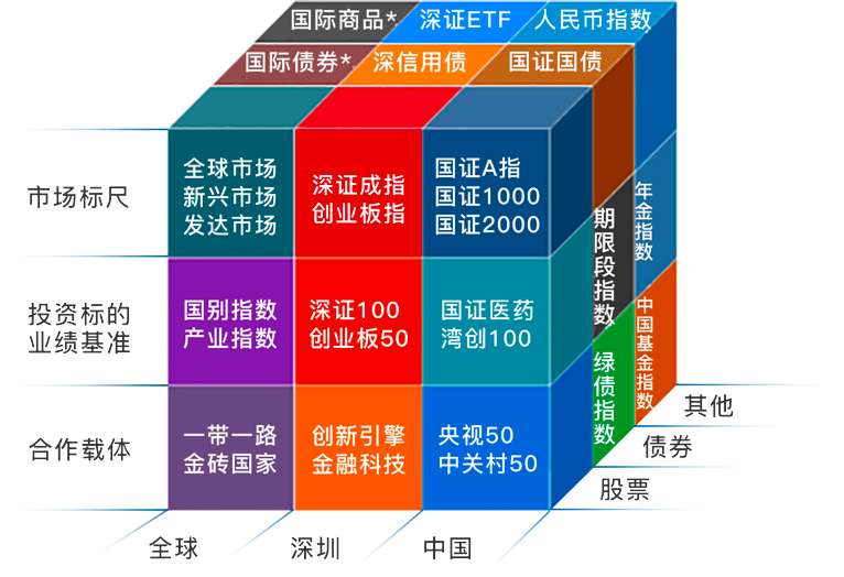 受深圳證券交易所(深交所)委托,負責“深證指數(shù)”的規(guī)劃、研發(fā)和運營,打造以“深證成指、創(chuàng)業(yè)板指、深證100”為核心的深市指數(shù)體系。發(fā)展自主品牌“國證指數(shù)”,致力于建設(shè)覆蓋全球主要市場的指數(shù)體系,服務(wù)境內(nèi)外市場多元化的投資需求。